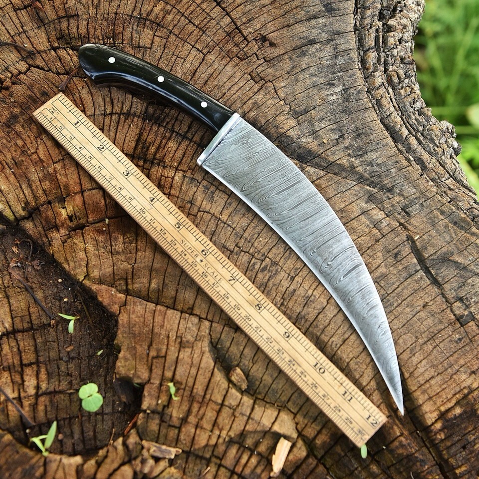 The full-tang construction ensures durability and balance, while the handle offers a secure and comfortable grip. The layered Damascus pattern adds character and uniqueness to every piece, making it ideal for collectors and fans alike. Includes a custom leather sheath for protection and display.