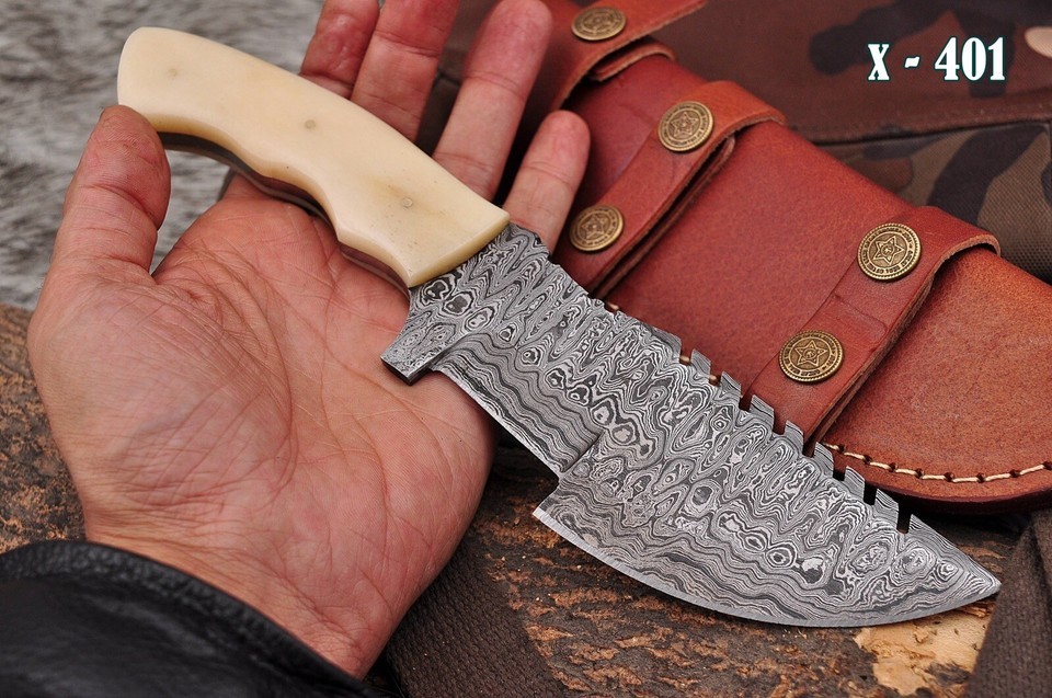 Custom Handmade Damascus steel hunting butcher tracker knife