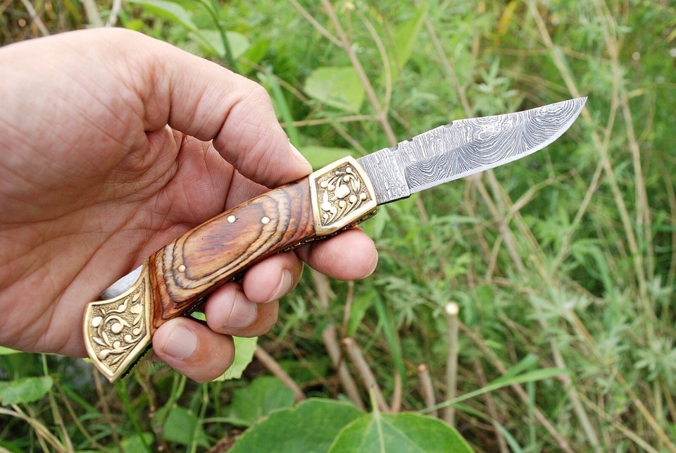 HANDMADE DAMASCUS STEEL FOLDING BLADE POCKET KNIFE HUNTING SKINNING TACTICAL