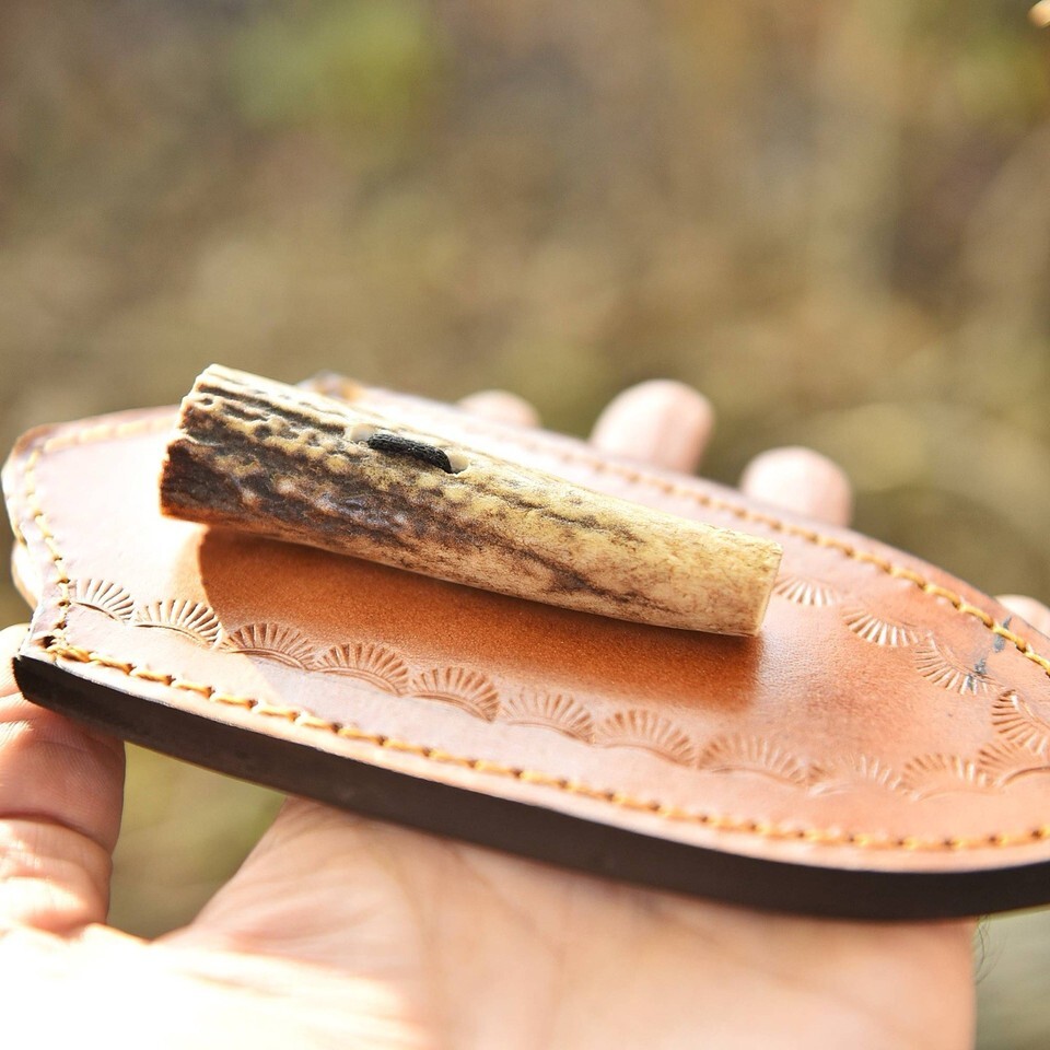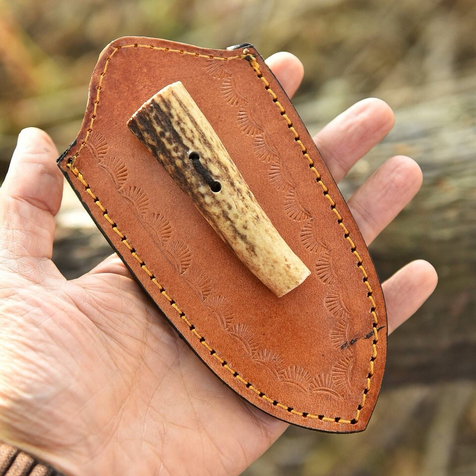 Leather Knife Sheath Fix Blade Holster Belt Loop Original Stag Antler