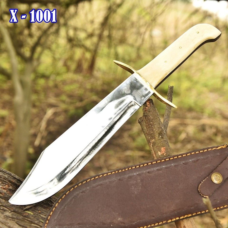 1095 High Carbon Steel Hunting Bowie Knife - Full Tang with Genuine Leather Sheath