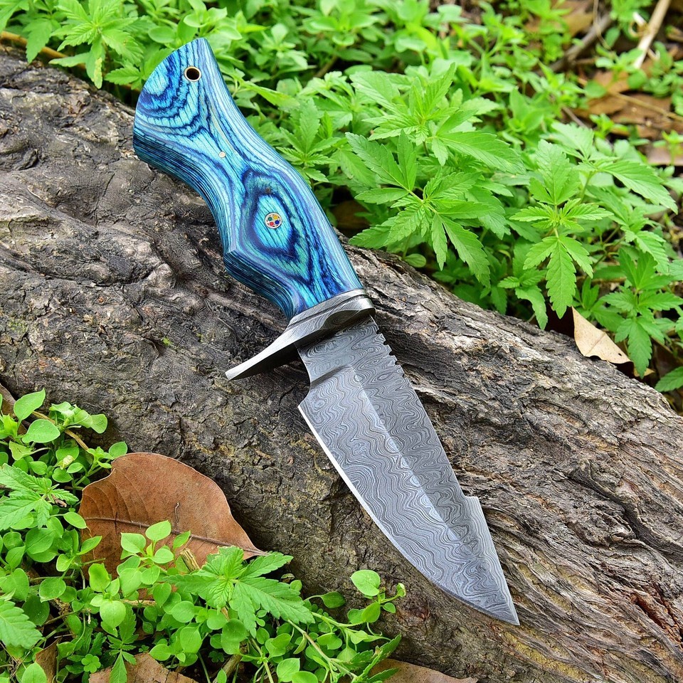 10” FORGED DAMASCUS STEEL HUNTING TRACKER BOWIE KNIFE WOOD HANDLE EDC X-328