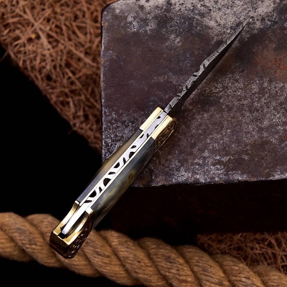 Custom Handmade Damascus Steel Pocket Knife Folding Blade / Hunting / Camping