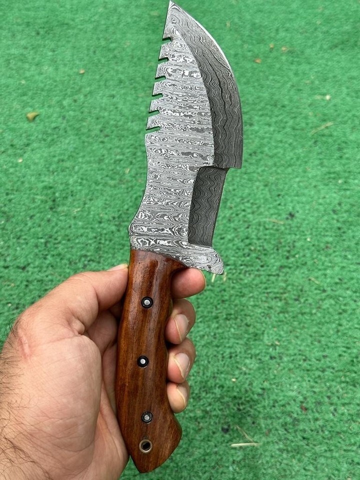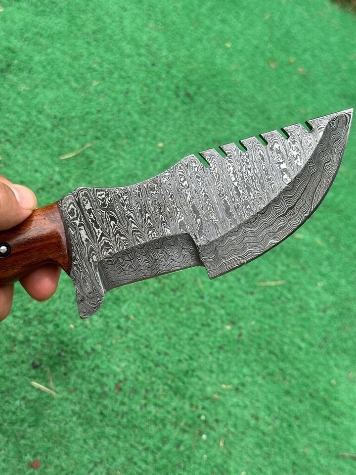 Handmade Damascus Steel hunting Skinning tracker fixed blade Sports Knife