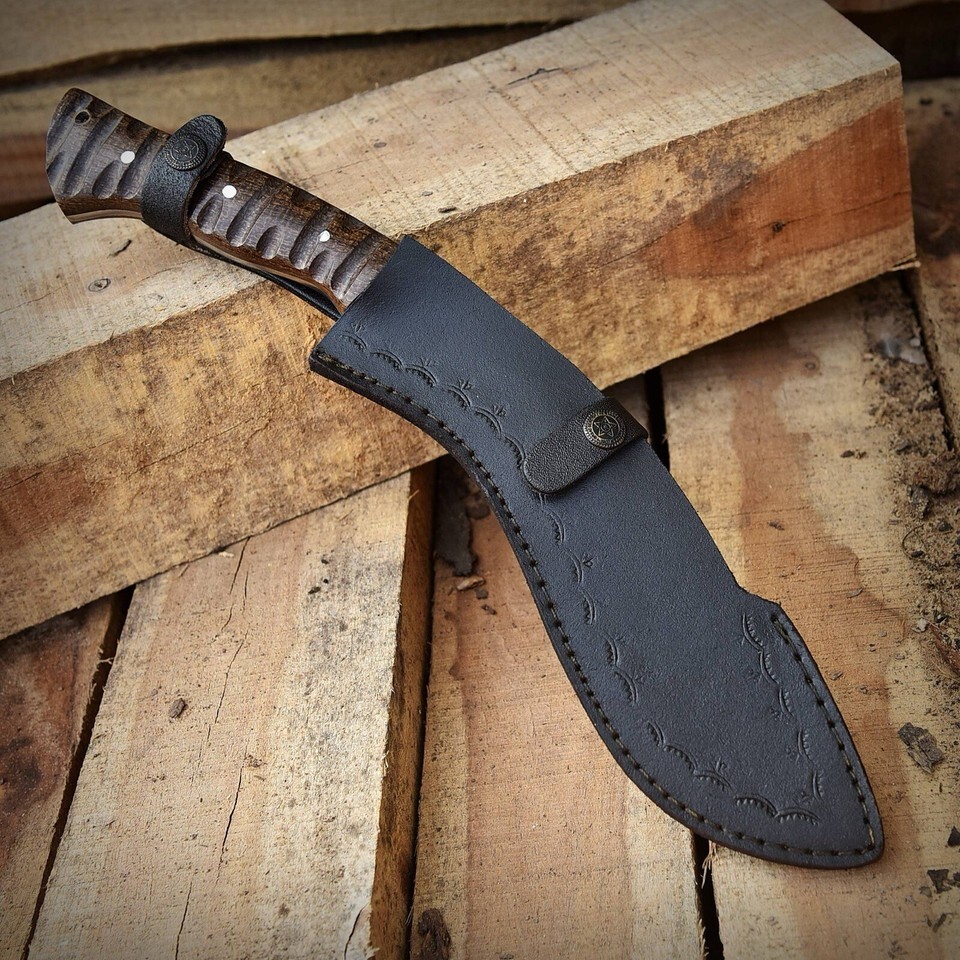 Custom Hand Forged Carbon Steel Hunting Kukri Bowie Knife Leather Sheath