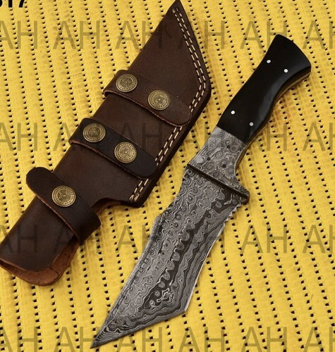 This custom-made fixed blade knife is perfect for hunting, everyday carry, combat, and survival situations. The blade is made of high-quality carbon steel that is strong and durable. The handle is made of wood and provides a comfortable grip for easy use.