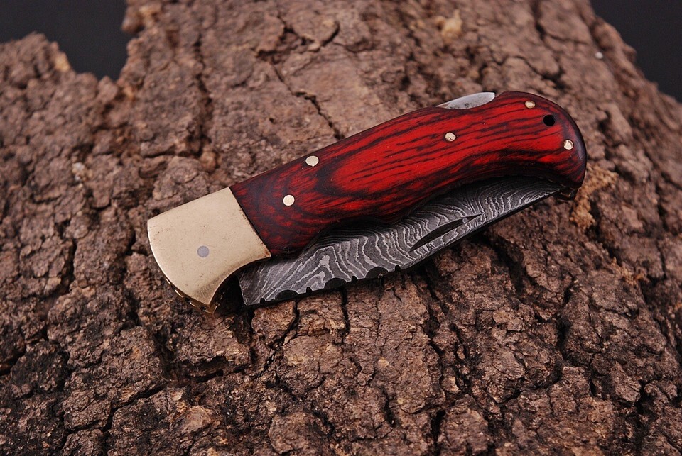 Damascus Steel Folding Blade Pocket Knife 6.5” Wood Handle Hunting Camping EDC