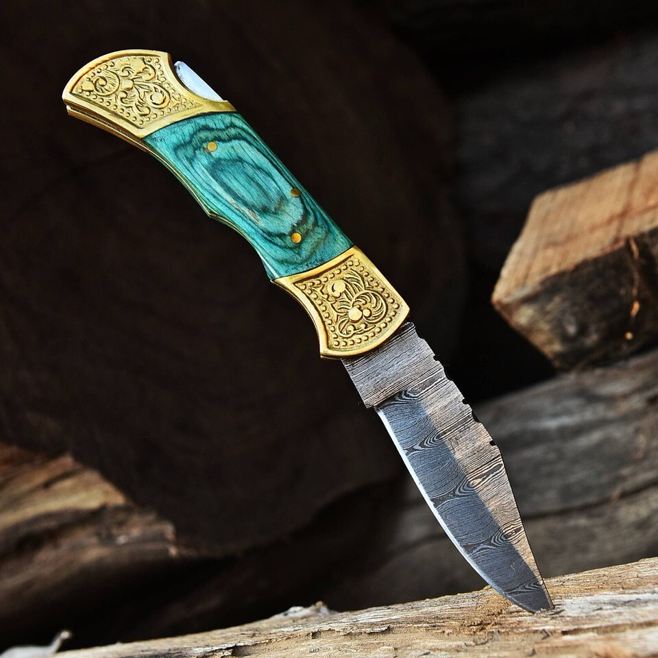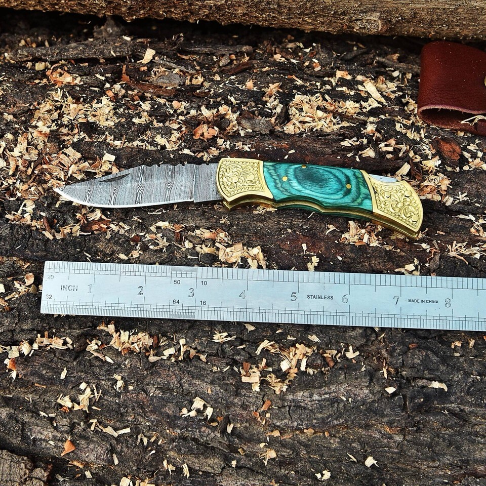 Damascus CAMPING TACTICAL FOLDING Blade POCKET Knife Hunting Camping-Back Lock