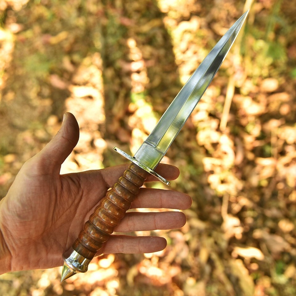 V-42 FSSF Stiletto Dagger Knife ? WWII Replica | Carbon Steel Blade + Leather Sheath