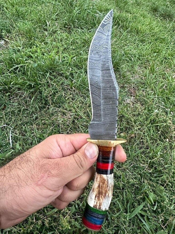 10”Damascus Steel Stag Knife Hunting Bowie and 50 similar items