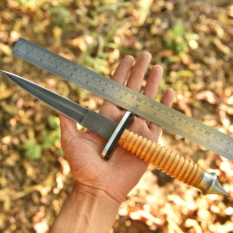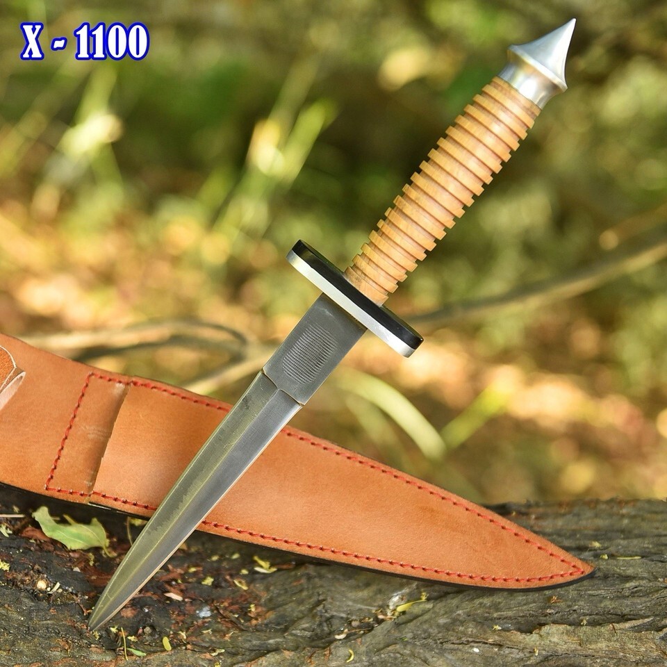 V-42 FSSF Stiletto Dagger Knife ? WWII Replica | Carbon Steel Blade + Leather Sheath