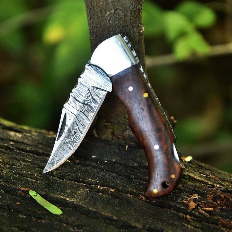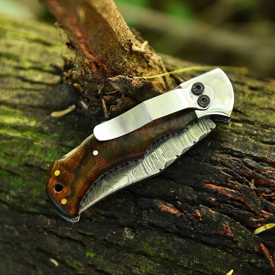 Damascus Camping Tactical Folding blade Pocket Knife Lock-back Wood Handle