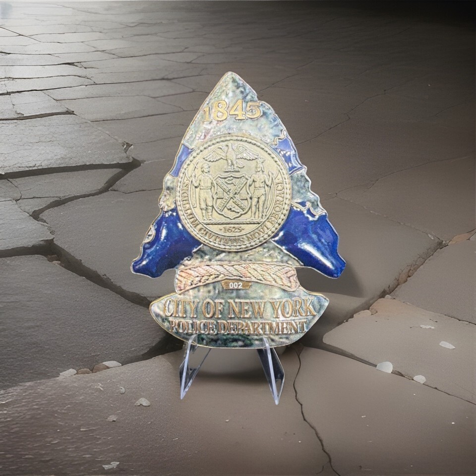 This Rare NYPD Arrowhead Challenge Coin features a unique design with the finest challenge coin inscription on one side and a 5 Boro Map on the other, making it a highly sought-after collectible item for enthusiasts of Militaria. With its original production and serial number 002, this coin adds historical significance to any collection.