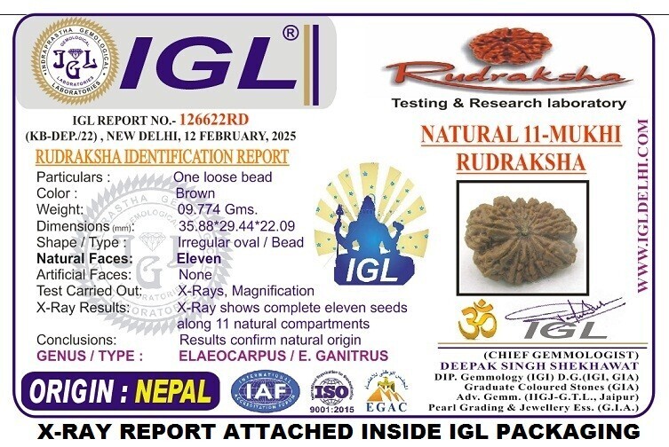Product Name : Rare Super Collector 11 Mukhi Rudraksha With Complete 11 Seeds ? Nepal
