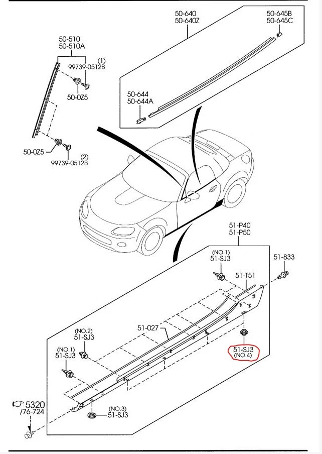 4x Mazda MX5 Exterior Rocker Molding Clip | NE56-51-SJ3A | NC MX5 Miata 06-15