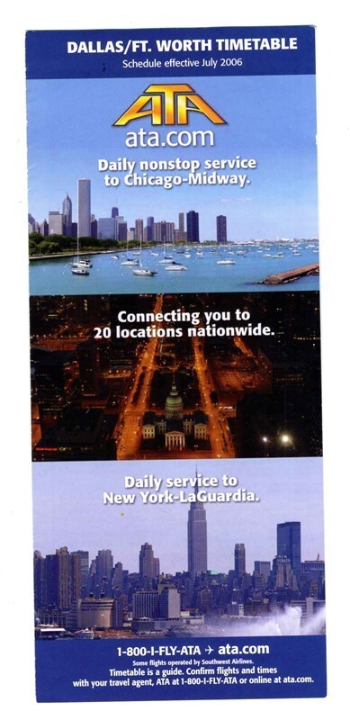 A 6 panel American Trans Air System Dallas Ft Worth Timetable, effective July 2006 In very fine condition.