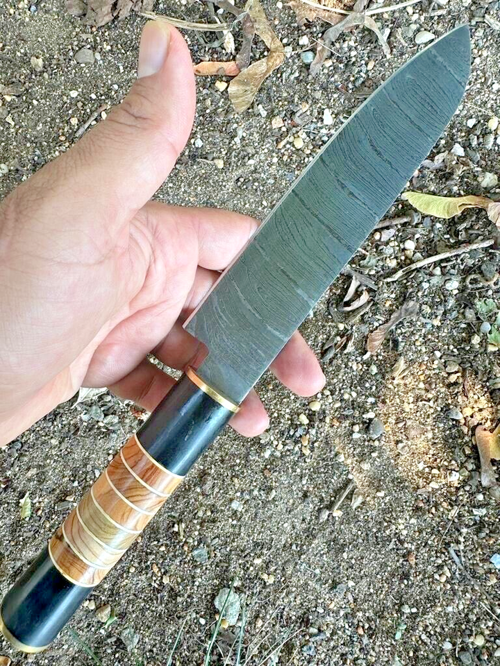 CUSTOM MADE DAMASCUS STEEL CHEF KNIFE KITCHEN UTILITY KNIFE BULL HORN WOOD HANDL