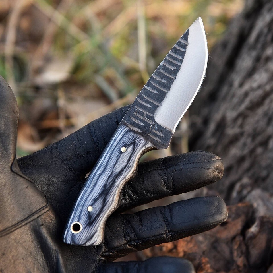 Introducing a popular hunting knife made with high carbon steel and a full tang for maximum durability. The handle is made with beautiful stain wood and is handmade with care. This versatile knife can be used for hunting, skinning, and survival situations.