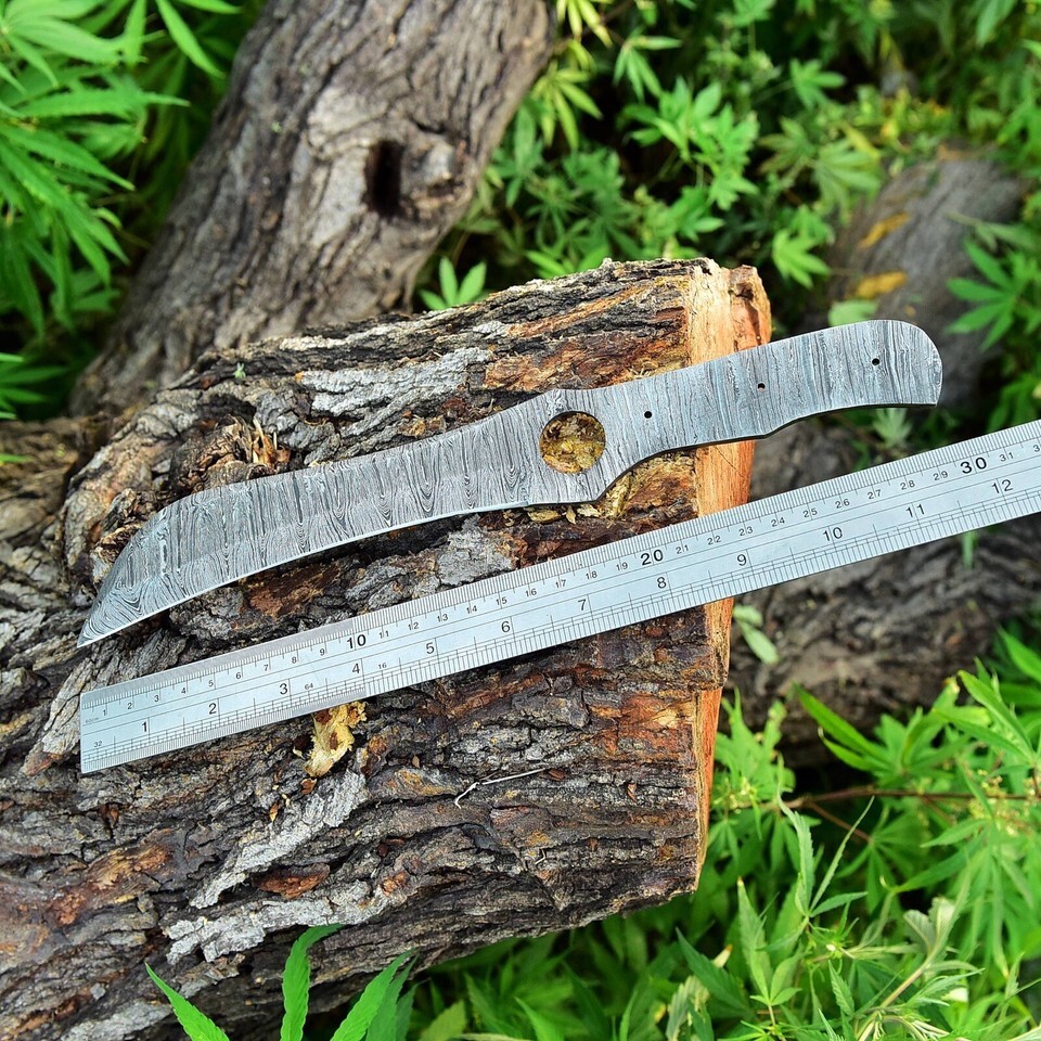 CUSTOM DAMASCUS STEEL HUNTING TRACKER KUKRI BLANK BLADE KNIFE FULL TANG X-440