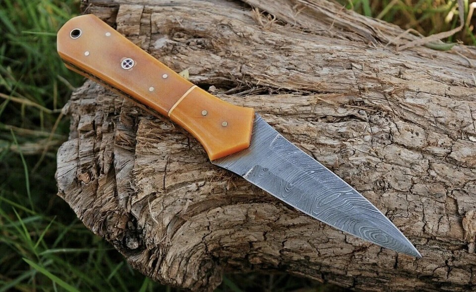 Blade of this knife has a nice file work and is made of 512 layers of 4340 stainless steel and 1075 high carbon steel and hardness 55-58 HRC . This robust knife is lab tested under intense conditions, the balance and shape of this knife ensures perfect grip.