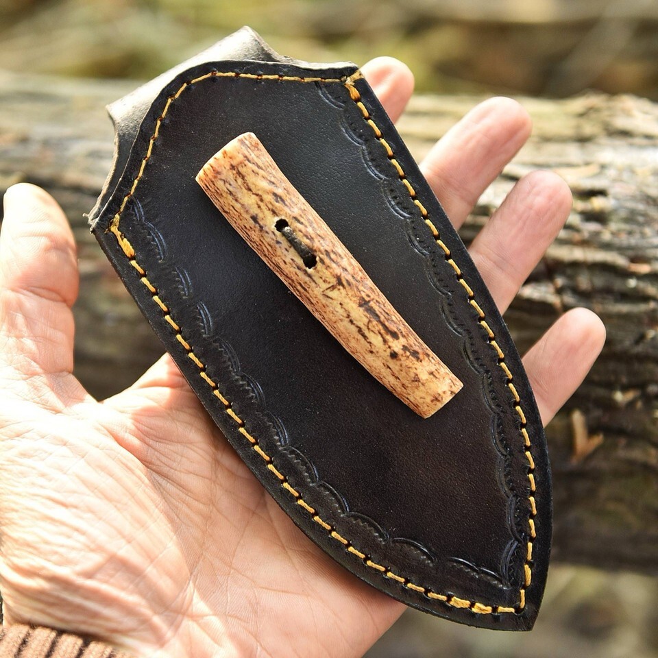 Black Leather Knife Sheath Fix Blade Holster Belt Loop Original Stag Antler