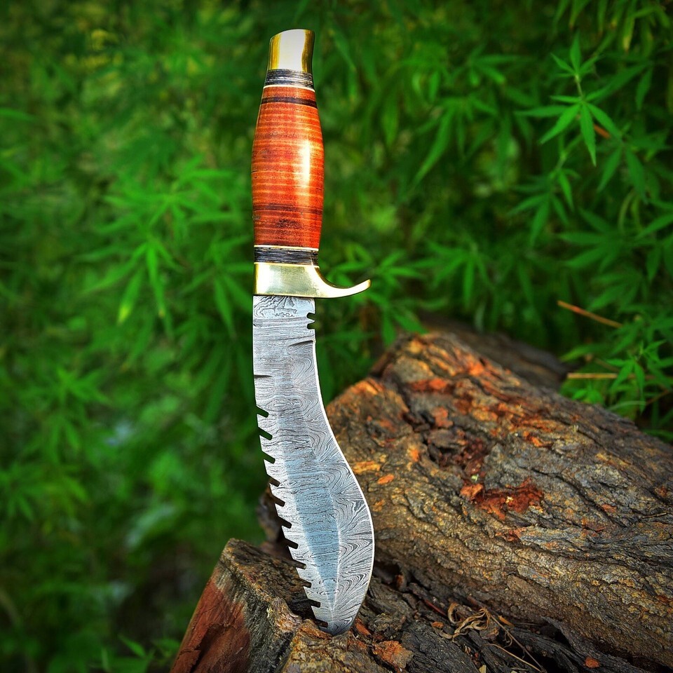 DAMASCUS Fixed Blade BOWIE Hunting SURVIVAL Knife GURKHA KUKRI LEATHER HANDLE
