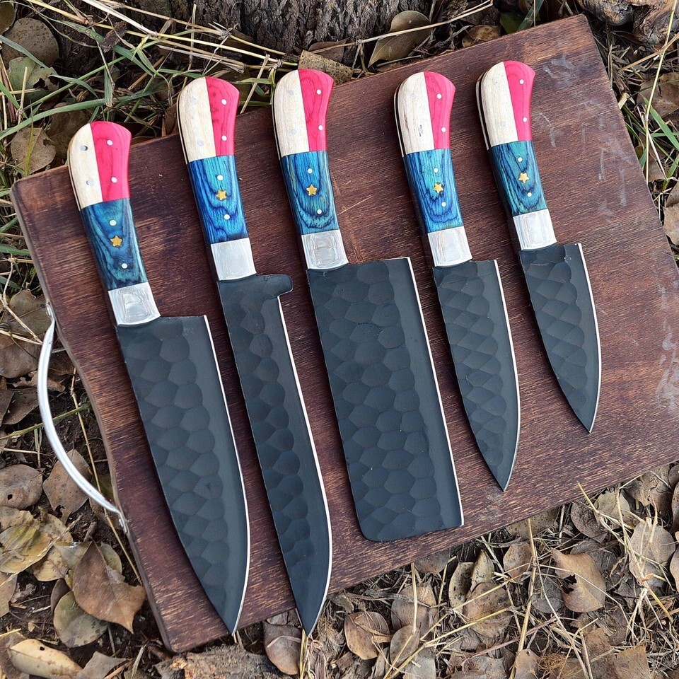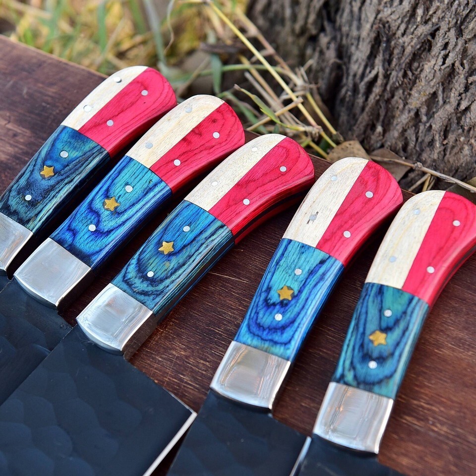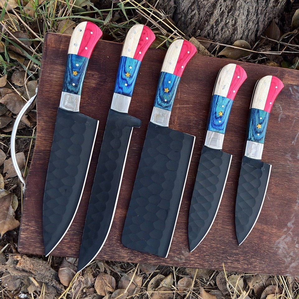 Handmade Forged Carbon Steel CHEF Knife KITCHEN KNIVES SET Texas Flag Handle