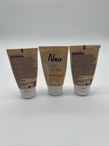 3 PACK Nair Face Cream Hair Remover with Sweet Almond Oil, 2 oz ~NO BOX