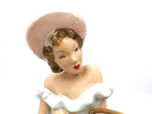 Vintage Chalkware Girl Woman Hat & Basket and 50 similar items