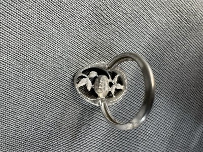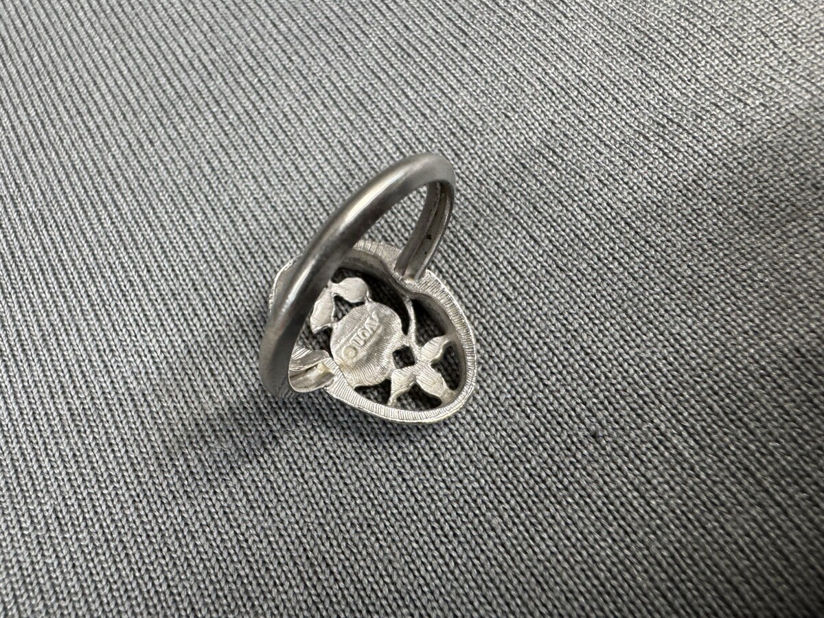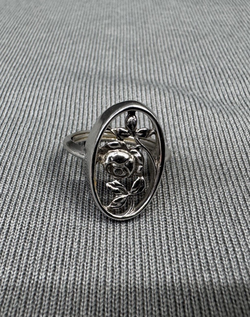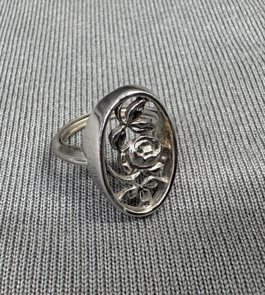 Vintage 1975 Avon Rosamonde Openwork Rose Oval Ring Filigree Art Nouveau Silver