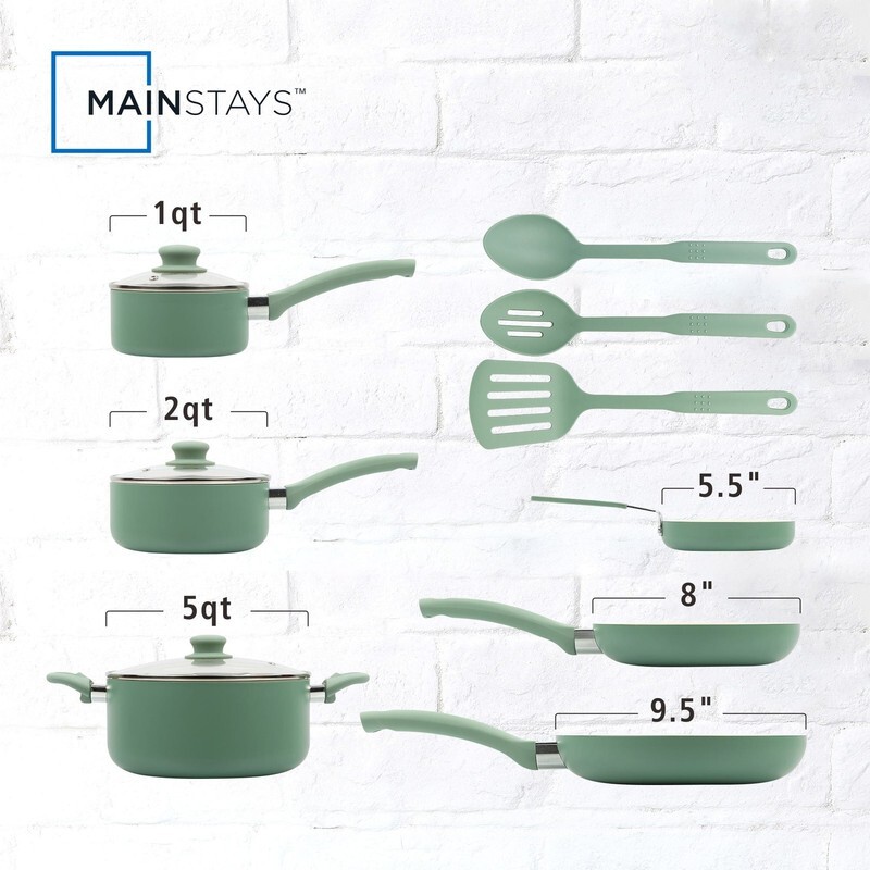 Mainstays Ceramic Aluminum, 12 Piece, Pots and Pans Cookware Set Green Nonstick