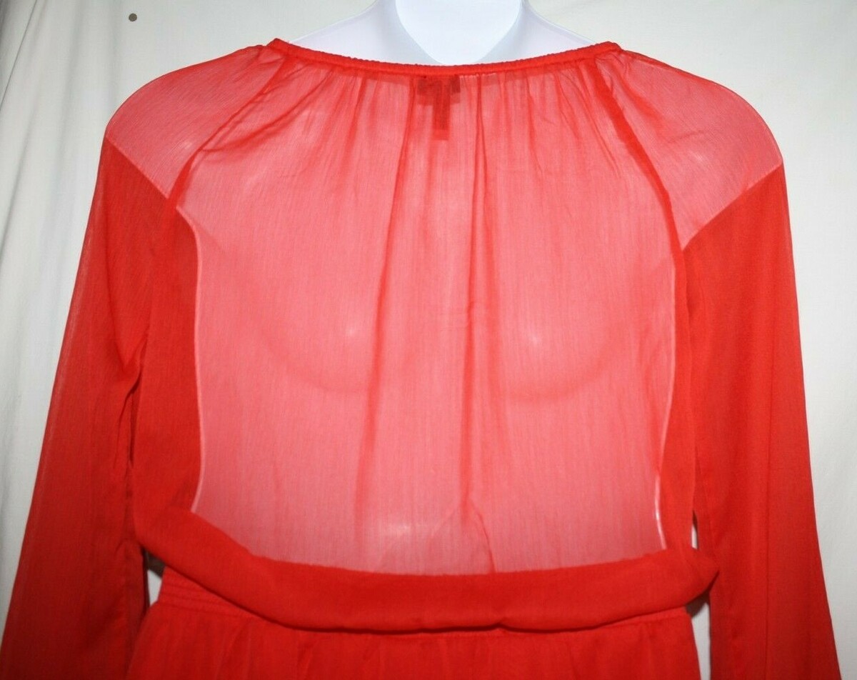 Jessica Simpson Misses MEDIUM Georgette Red Beaded Blouson Sheer Mini Dress