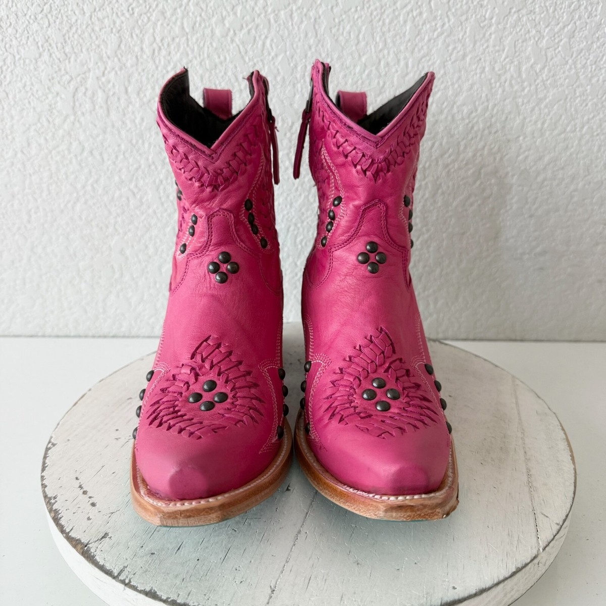 Lane COSSETTE Cowboy Booties Western Cowgirl Short Ankle Boots Hot PInk Size 6.5