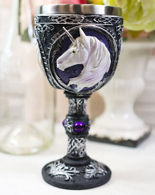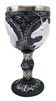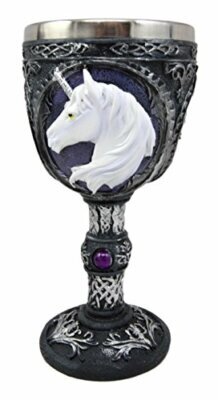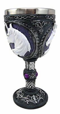 ? This Sacred Unicorn wine goblet is made of fine polyresin and stainless steel, hand painted and polished individually.