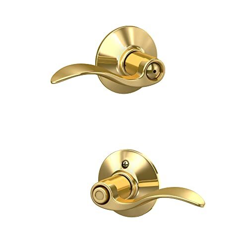 Schlage F40 V ACC 605 Accent Door Lever, Bed & Bath Privacy Lock, Bright Brass