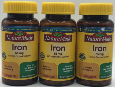 3x Nature Made Iron 65 mg (325 mg Ferrous Sulfate) Iron Supplements 180 Tablets
