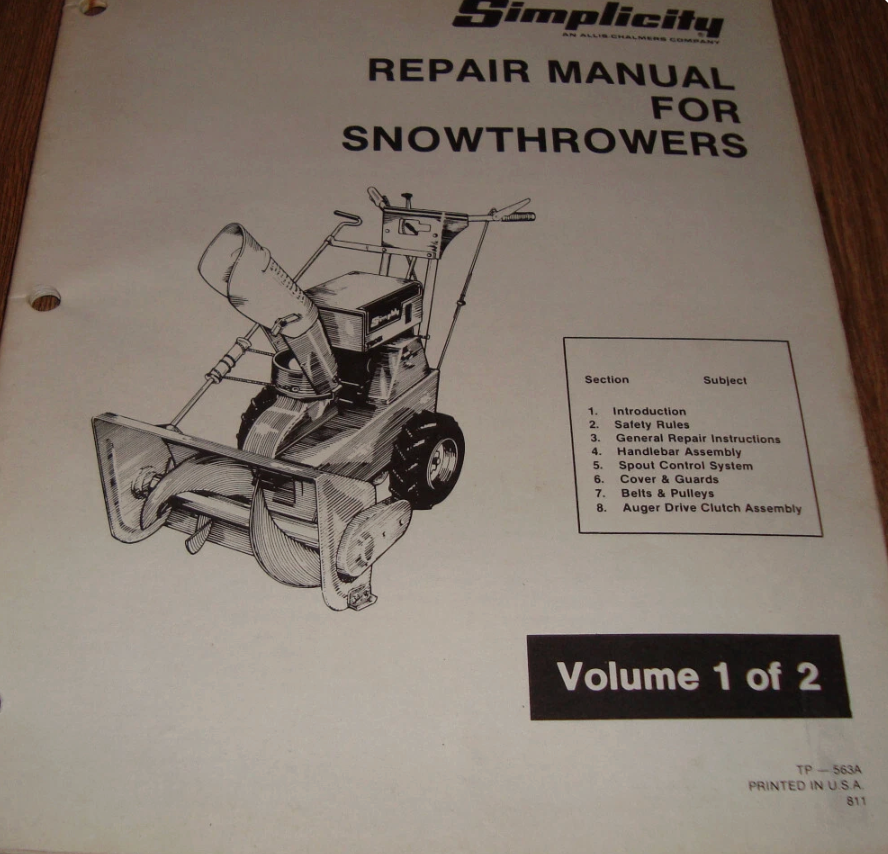 Simplicity Repair Manual for SNOWTHROWERS Volume 1 and Volume 2 OEM TP-563A?