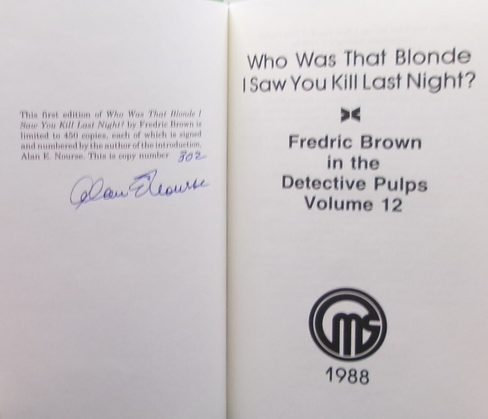 Fredric Brown WHO WAS THAT BLONDE I SAW YOU KILL LAST NIGHT? LTD Signed Pulp HC