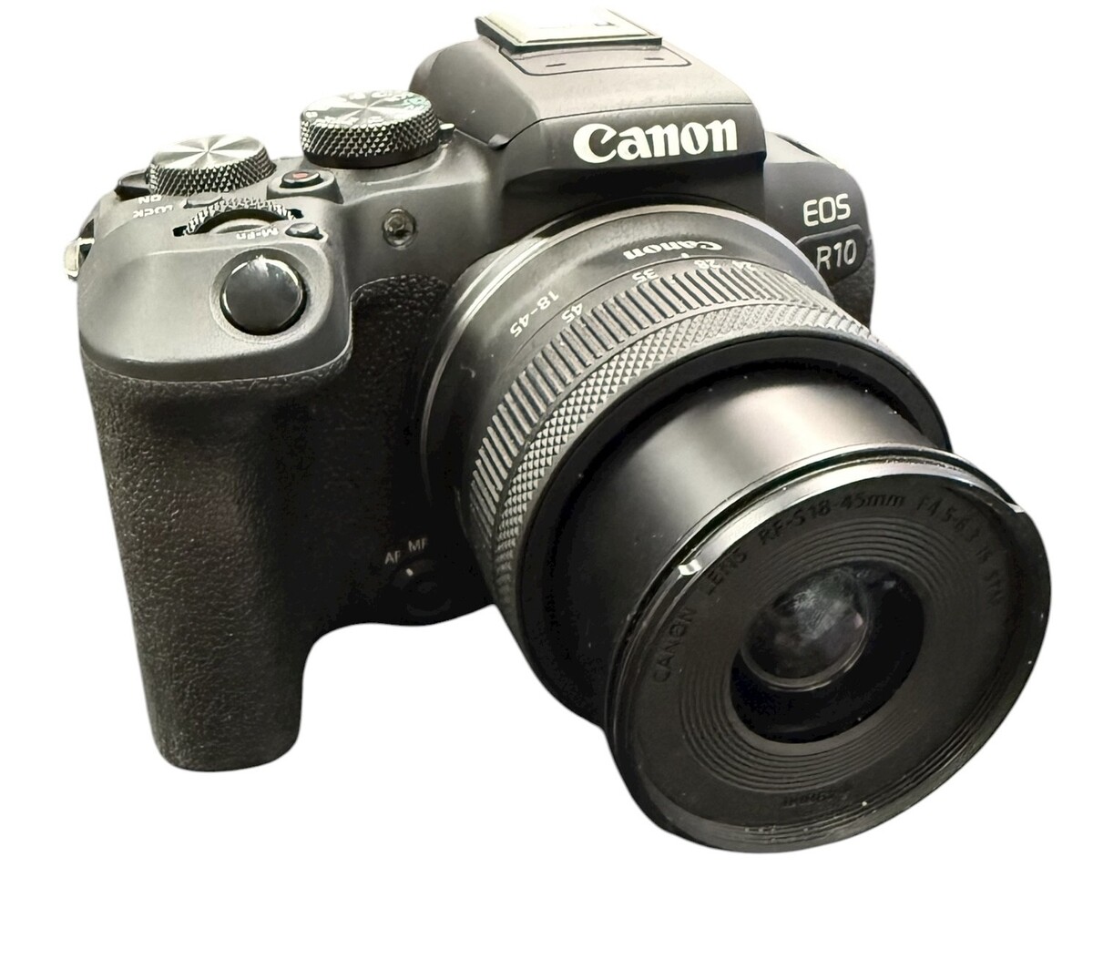 Type: Digital SLR KitBrand: CanonModel number: DS126842Model name: EOS R10Color: BlackSize: 24.2 MPCase included: noCharger included: yesBuilt-in flash: yesCondition:UsedNotes:EOS R10 Kit with 18-45mm Lens