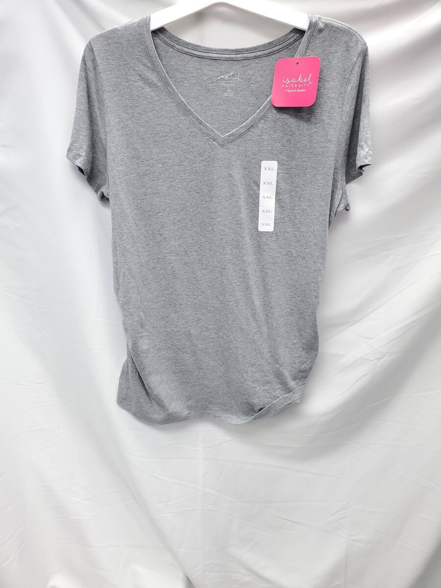 Isabel & Ingrid XXL Maternity Short Sleeve V-Neck Side Ruching Gray