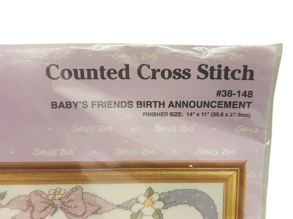 Janlynn Babys Friends Birth Announcement Cross Stitch Kit 14"x11" Suzys Zoo New