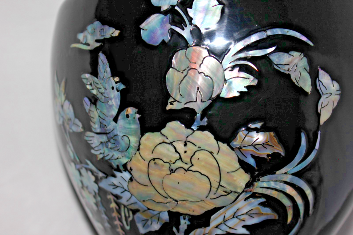 Vintage Black Lacquer Vase with Mother of and 48 similar items