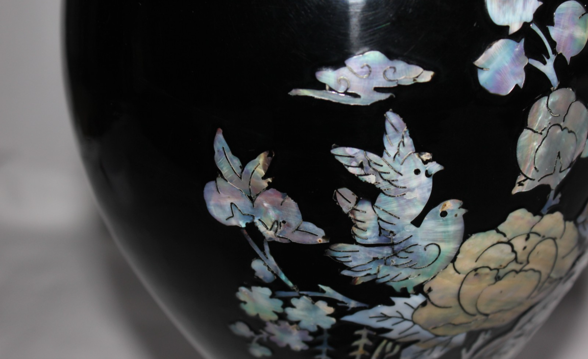 Color: Black Lacquer with Mother of Pearl with Floral Bird Inlay