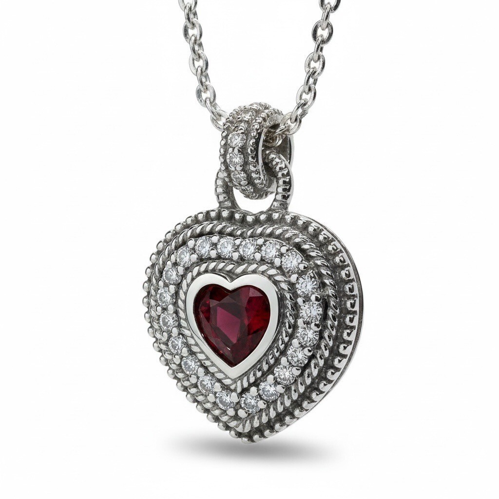 Judith Ripka Sterling Silver Ruby Red Garnet & CZ Heart Pendant 925 Necklace