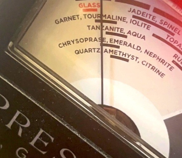 ? The cut Garnet gemstone centerpiece was tested to be authentic using the Presidium Gem Tester II as shown in image. This stone displays as bright red to near black depending upon the lighting...always beautiful and dramatic.