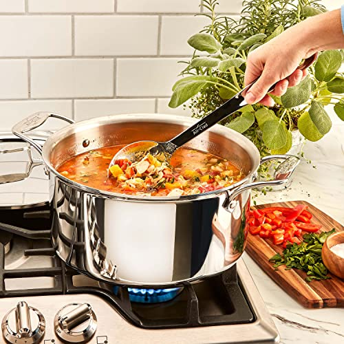 All-Clad cookware. The solid spoon has a rounded, solid head that is