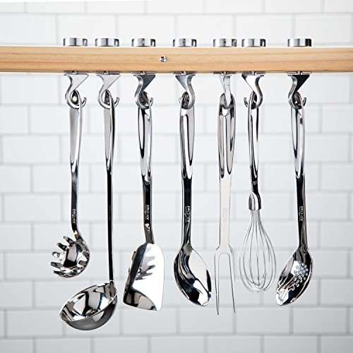 Highly polished, 18/10 stainless steel Ergonomically designed to achieve ideal balance, weight and feel Laser etched All-Clad logo on the handle Able to hang for easy kitchen display