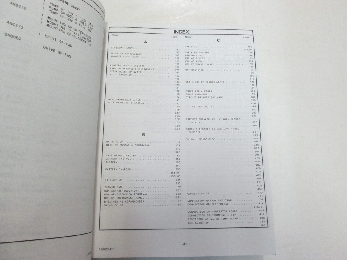 CATERPILLAR 3406C ENGINE GENERATOR SET PARTS MANUAL STAINED 4ZR1 9CR1 8ER1 9DR1-UP