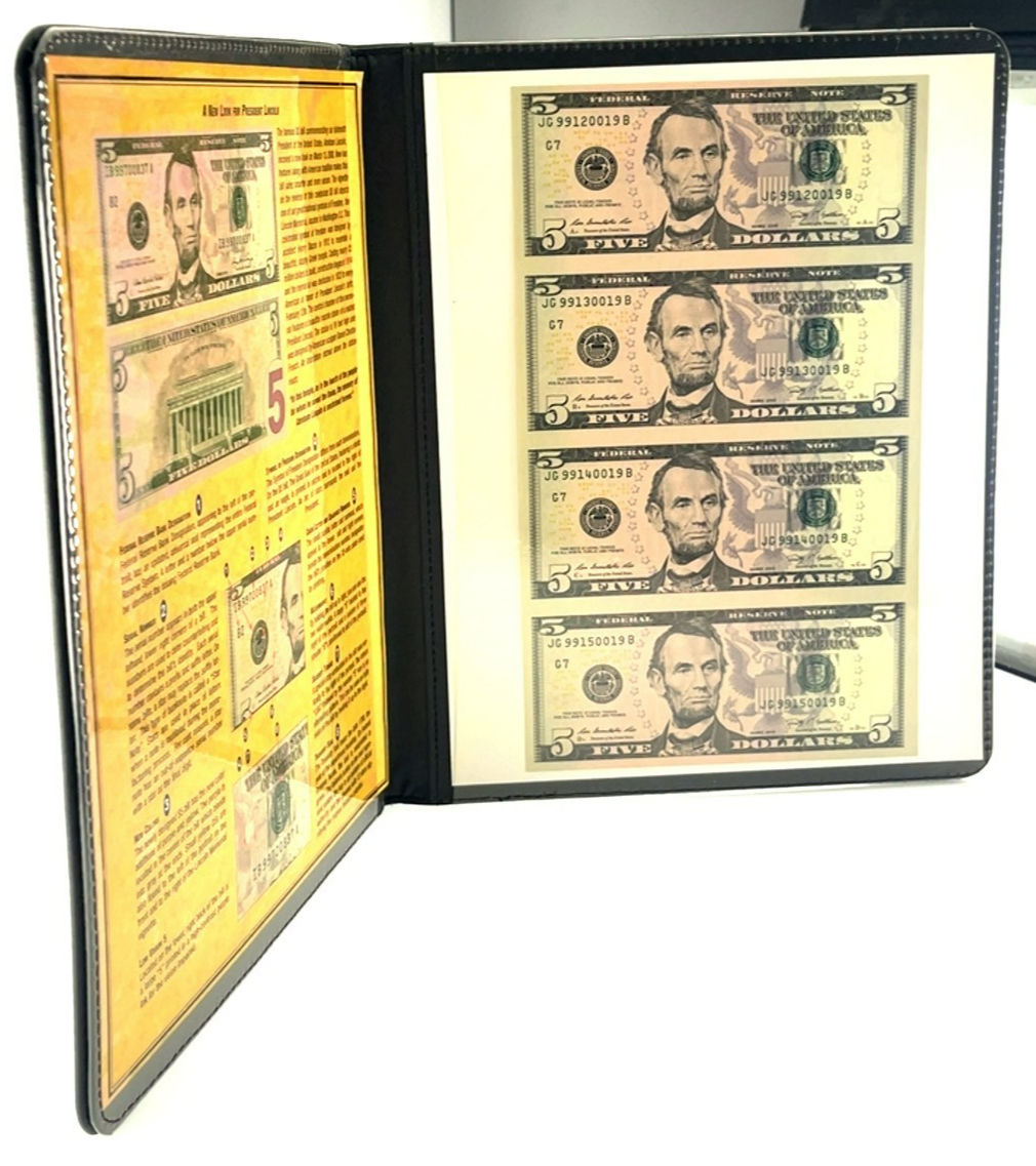 Series of 2009 Uncut Sheet of 4 $5 Abraham Lincoln Bill Sheet