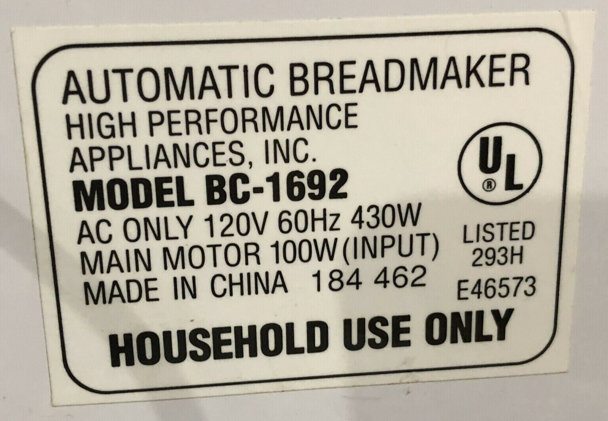 For Betty Crocker Bread Maker Machine Models BC-1692 |